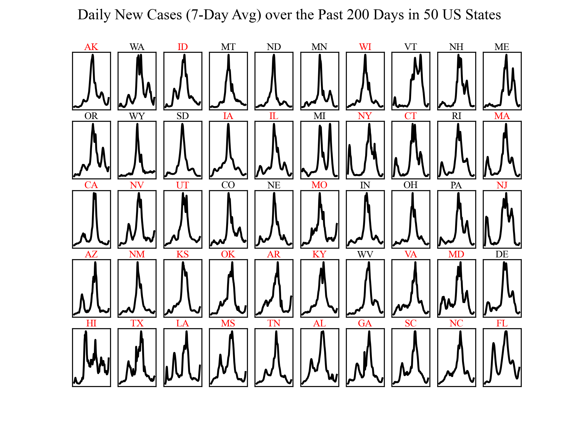 Daily New Cases in 50 US States